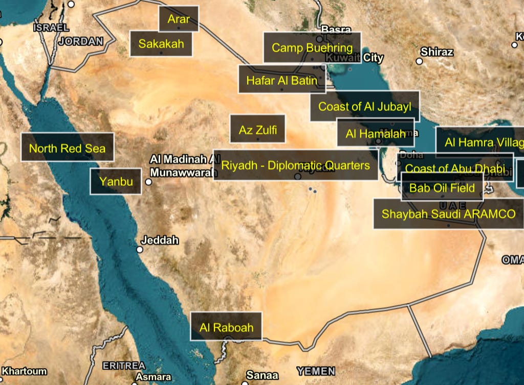 In the early and middle phases, Saudi Arabia absorbed comparatively limited activity relative to the significance of Prince Sultan Air Base and other military infrastructure on its territory. In the final stretch, that changed. Strike activity increased, and more importantly, the target set broadened. Prince Sultan and Riyadh remained relevant, but late in the campaign Iranian attention expanded to include Saudi energy export infrastructure, especially Ras Tannura, Yanbu, and maritime-industrial zones near Al Jubayl.